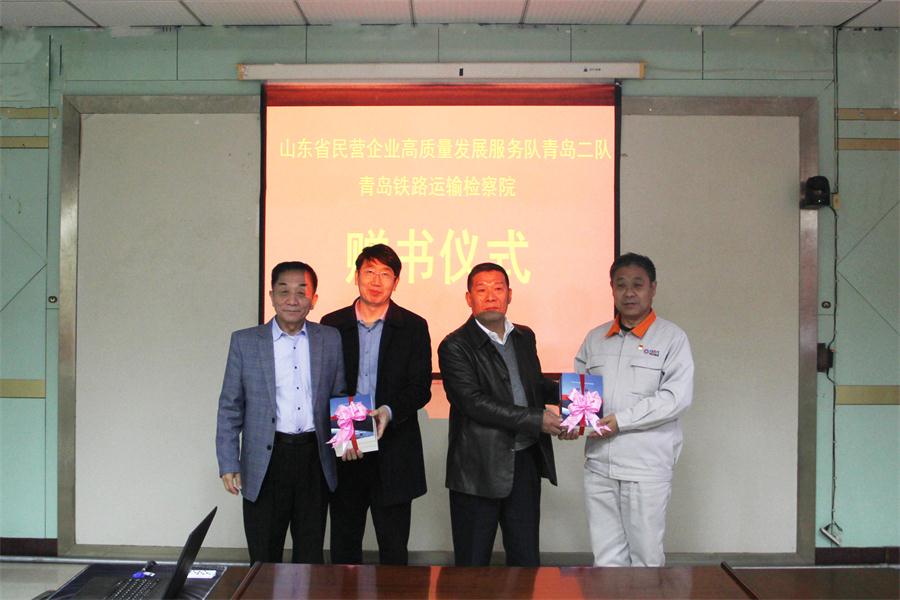 省民營(yíng)企業(yè)高質(zhì)量發(fā)展服務(wù)隊(duì)和青島鐵路運(yùn)輸檢察院的各位領(lǐng)導(dǎo)參觀了科技文化館、智能化生產(chǎn)車(chē)間和信息化系統(tǒng)管理平臺(tái),對(duì)我公司在全面落實(shí)疫情防控和復(fù)工復(fù)產(chǎn)等方面的做法給予充分肯定。最后,在公司培訓(xùn)中心進(jìn)行了座談,共同探討今后高質(zhì)量發(fā)展服務(wù)相關(guān)工作的重點(diǎn)和方向,并舉行了贈(zèng)書(shū)儀式和防疫物資捐贈(zèng)儀式。