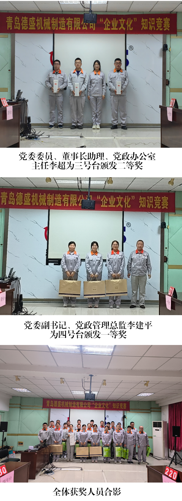 為進一步學(xué)習(xí)宣傳公司企業(yè)文化的豐富內(nèi)涵,不斷增強員工弘揚 和踐行企業(yè)文化的自覺性,提升企業(yè)“軟實力”,2023 年 3 月 16 日下午,青島德盛機械制造有限公司組織開展了企業(yè)文化知識競賽活動, 公司董事長孫佩璋,黨委副書記、黨政管理總監(jiān)李建平,黨委委員、董事長助理、黨政辦公室主任李超,總經(jīng)理助理、人力資源部經(jīng)理劉 建芹出席本次活動。